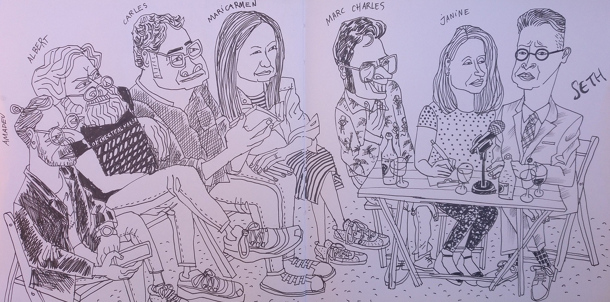 En esta ocasión, Lluïsot, un ilustrador asistente a la charla, nos inmortalizó en plena acción.